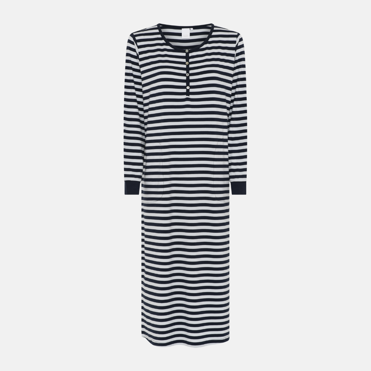 Detta vackra långärmade nattlinne i bambu är av underbart tjock kvalitet. Perfekt för svala nätter och mysiga söndagar hemma. Bambu är andningsbart och temperaturreglerande, vilket gör det perfekt att sova i utan att det blir för varmt eller kallt.