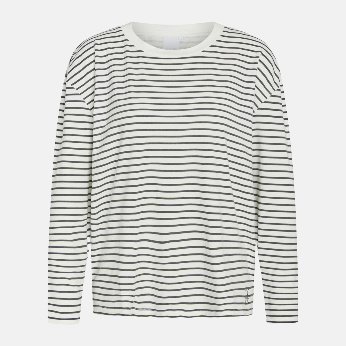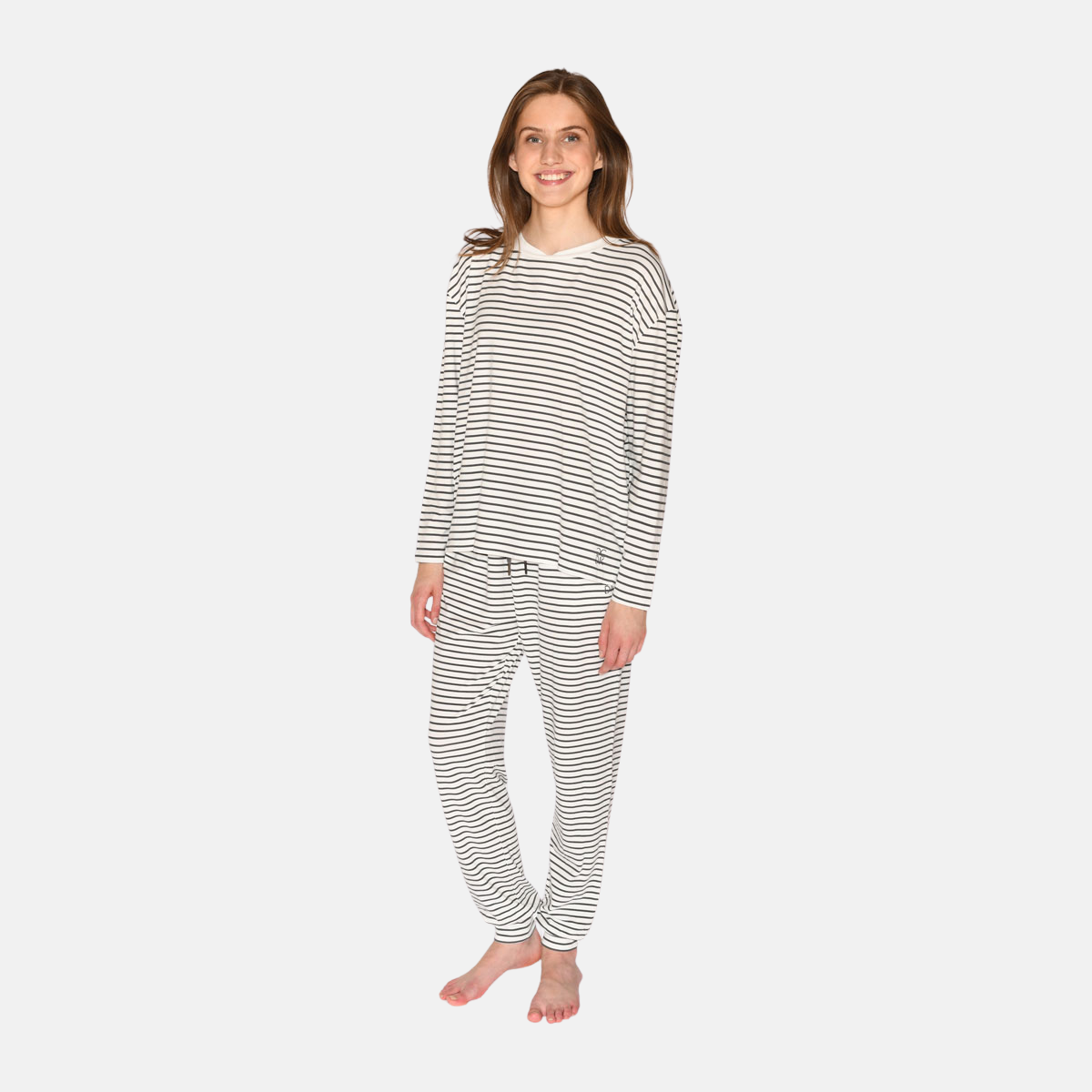 Söt långärmad nattskjorta i bambu i vitt med blå ränder, från CCDK. Perfekt för svala nätter och mysiga söndagar hemma.