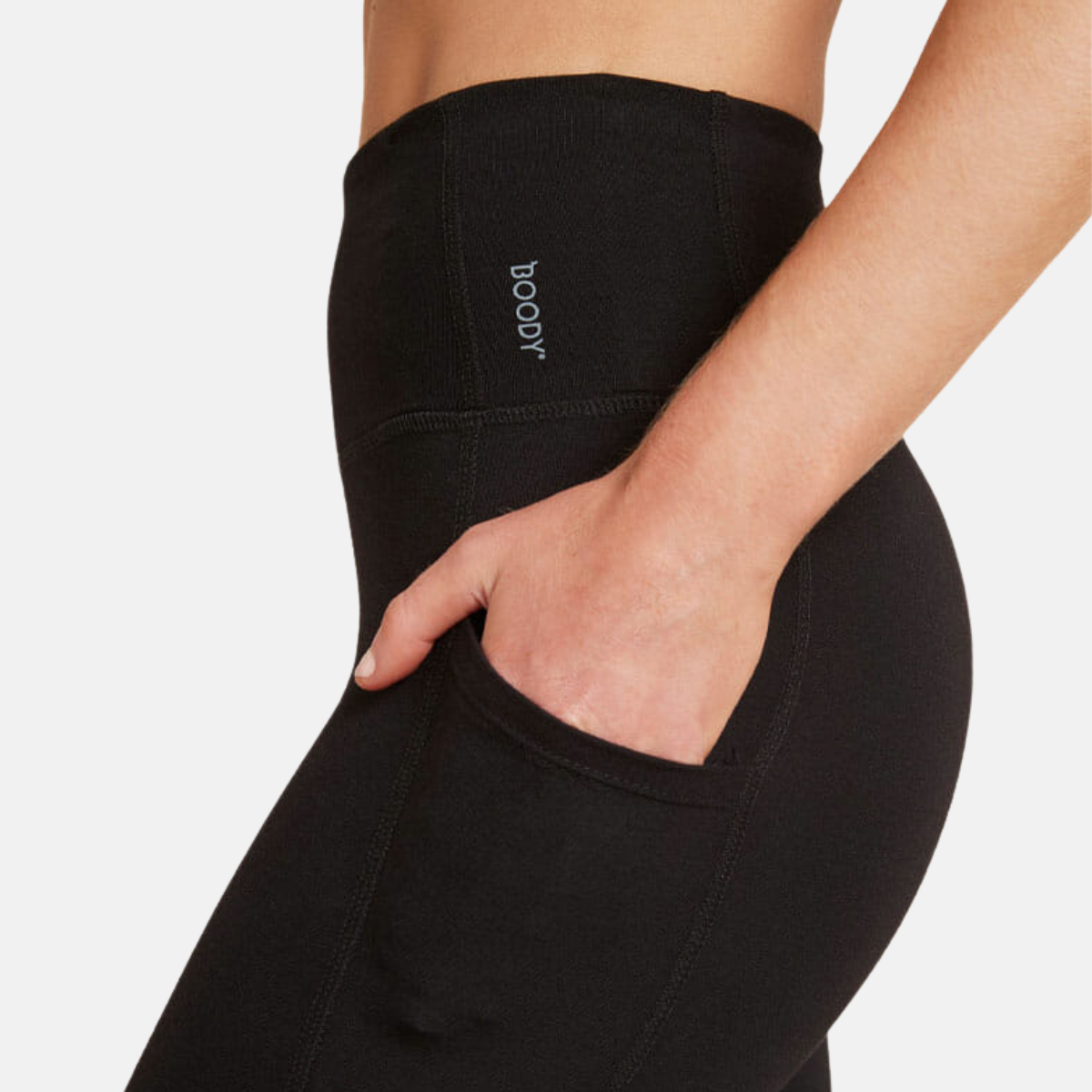 Med sitt breda och höga midjeband, böjda panelform mot baksidan och platta sömmar är dessa läckra och stretchiga bambustights perfekta för allt från hård träning till avslappning. Och så har de en smart ficka för nycklar eller mobiltelefon på utsidan av benet.