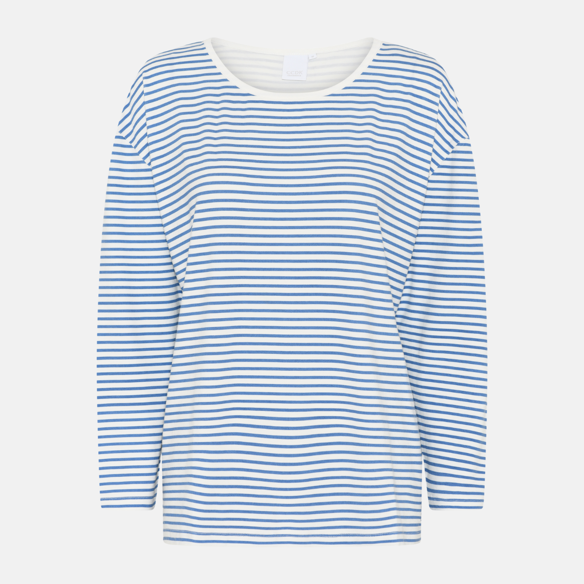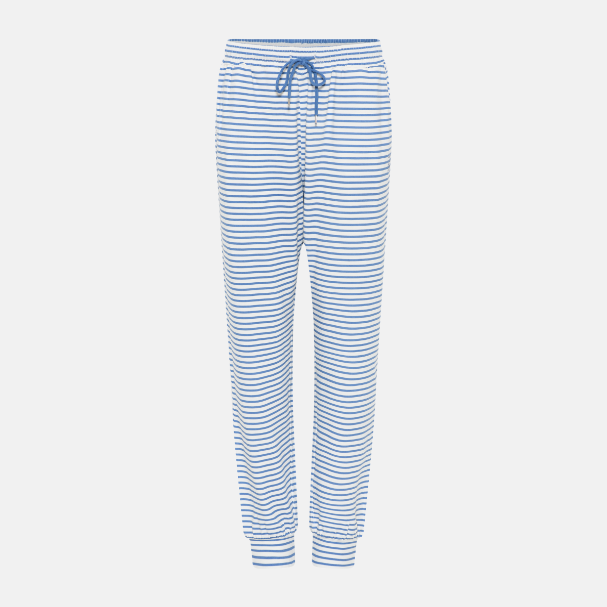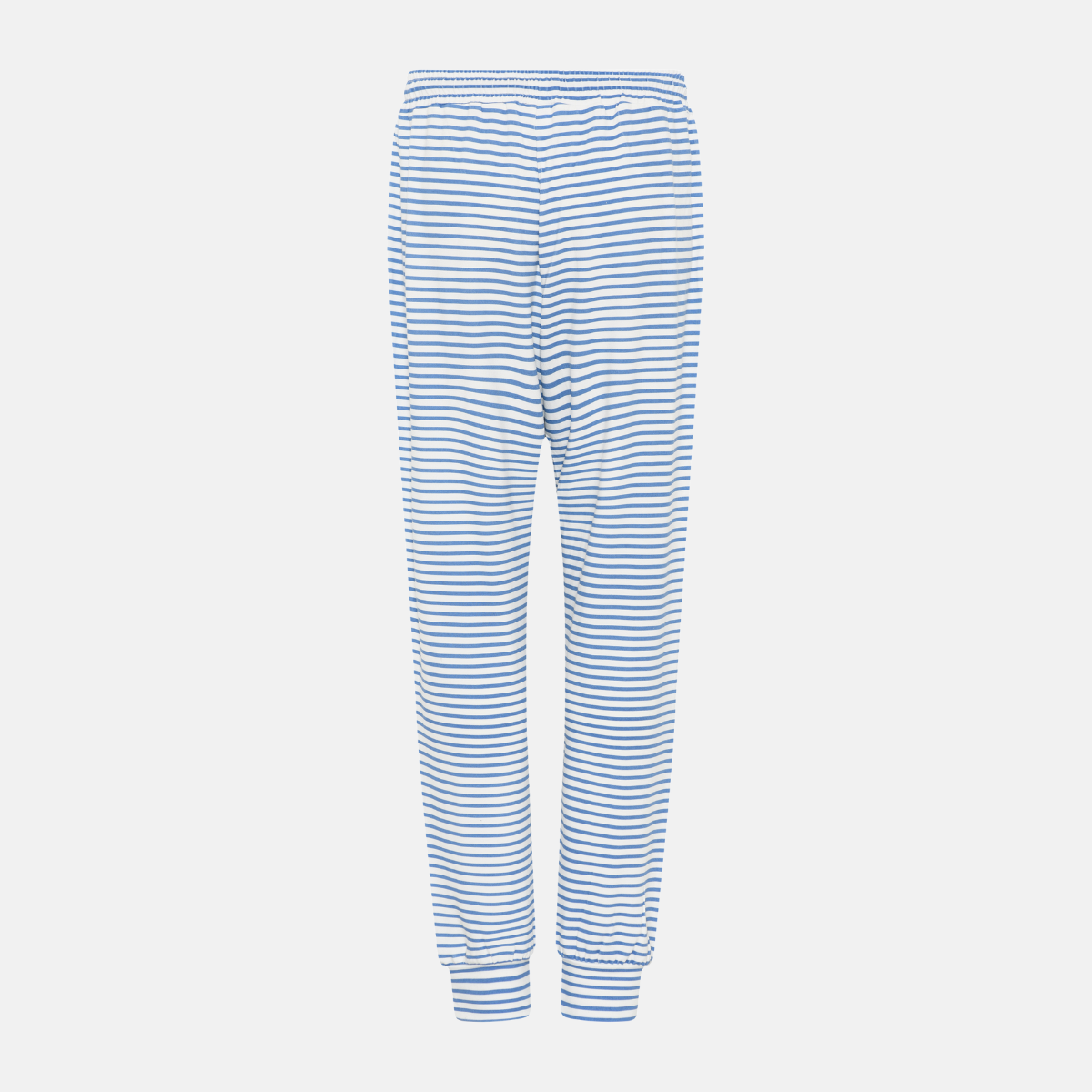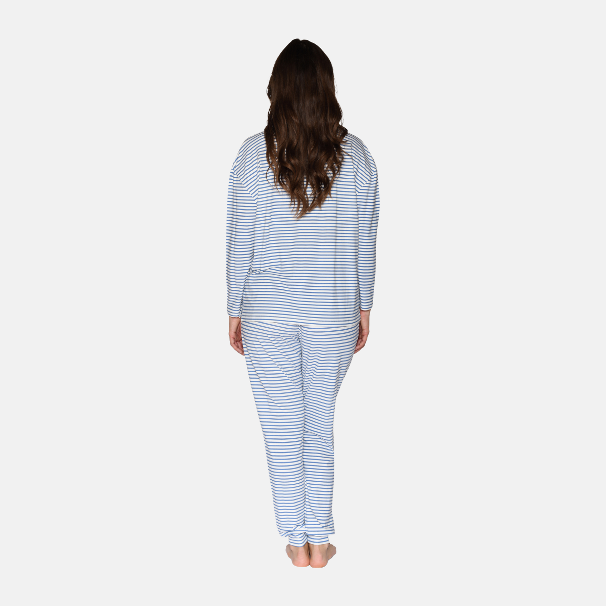 Ljusblått randigt bambu set för kvinnor i mjukt och andningsbart material. Bekväm passform med en lättviktskänsla som gör setet perfekt för avkoppling och lugna dagar hemma.