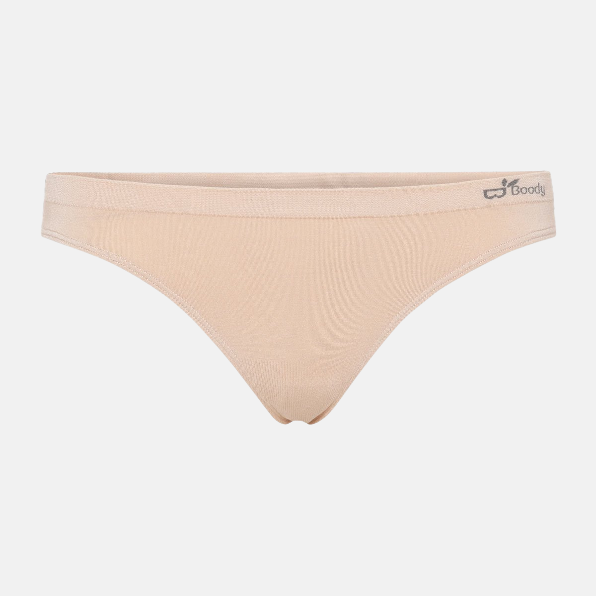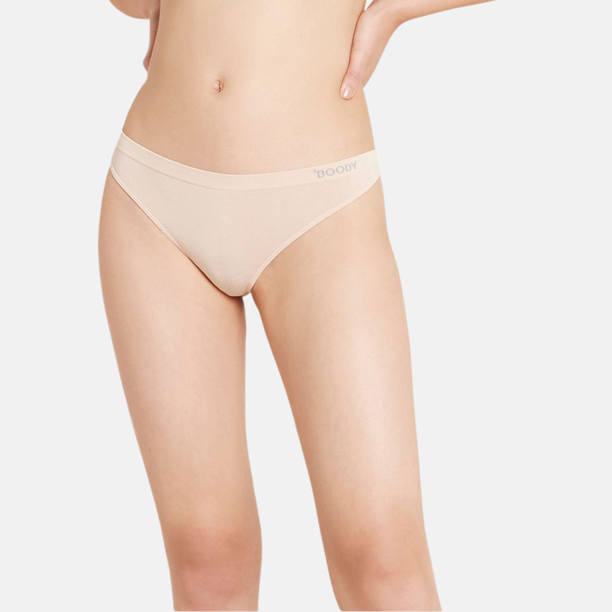 Denna rosa g-stringstrosa i bambu har ett midjeband som vävs in med trosan och vikta kanter i benöppningen. Bambu är bl.a. andas vilket gör materialet perfekt för underkläder.