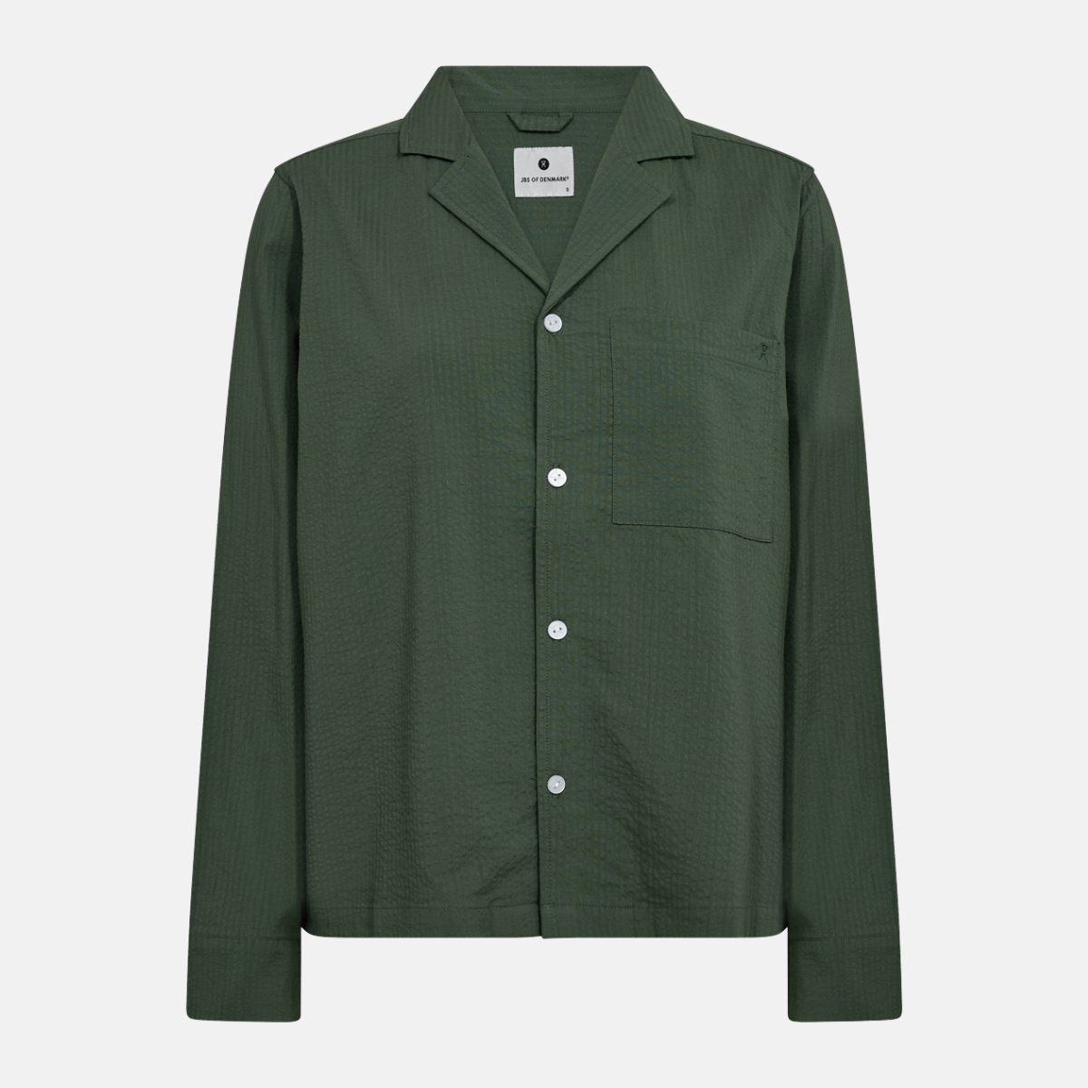 Grön långärmad nattskjorta för kvinnor i härlig seersucker-kvalitet (även känd som bæk&bølge) från JBS of Denmark. Pyjamasskjortan är gjord av den mjukaste bambu- och ekologiska bomullsblandningen, som både är underbar att sova i, men också för en avslappnad söndag hemma.