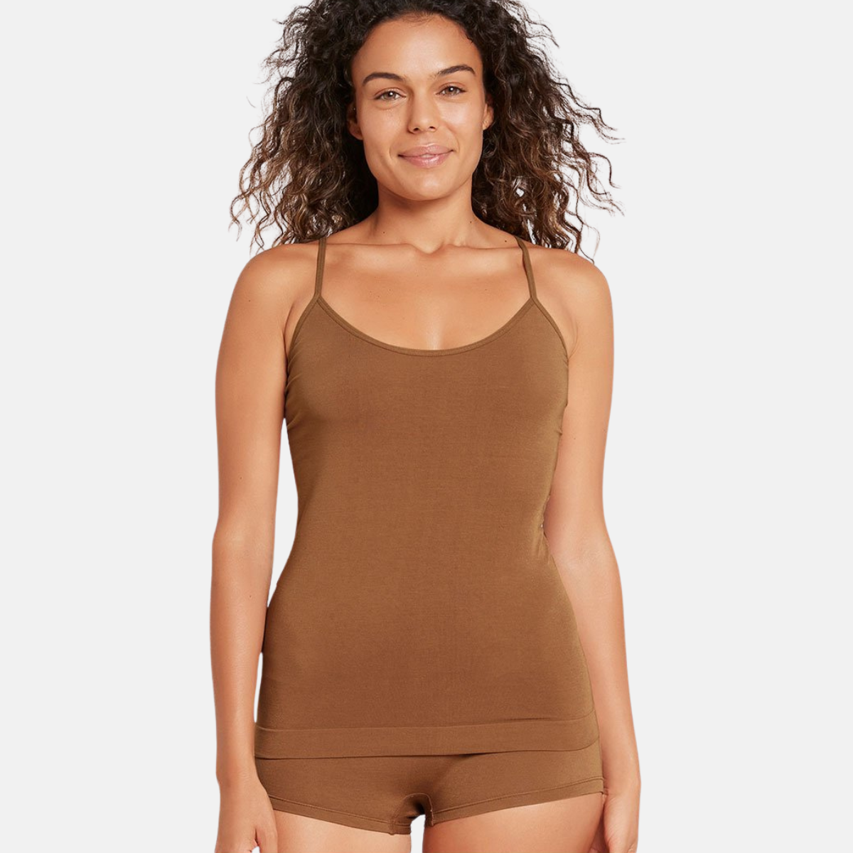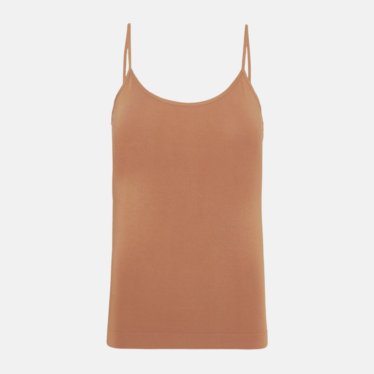 Extremt skön solbränna nude, sömlös och åtsittande bambu topp från Boody, med tunna remmar. Toppen kan användas både som underställ och som topp till till exempel ett par jeans.