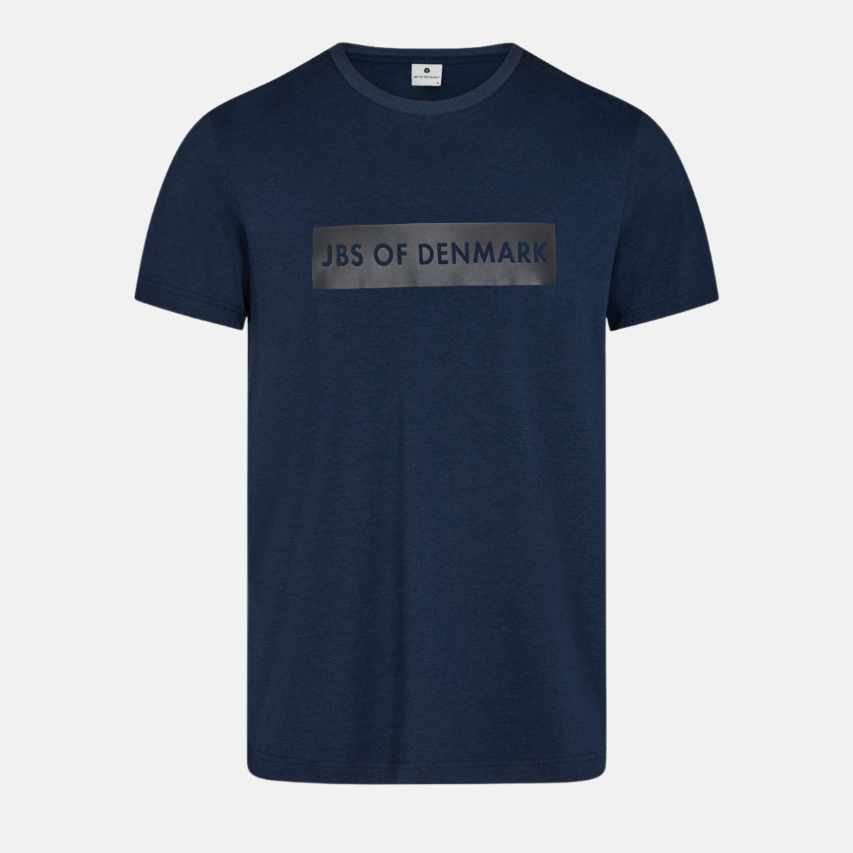 Detta är den perfekta T-shirten för män från JBS of Denmark. Denna marinblå basic T-shirt med tryck på bröstet är gjord av bambu, vilket ser till att den alltid är mjuk och läcker. Den andas och är fukttransporterande.