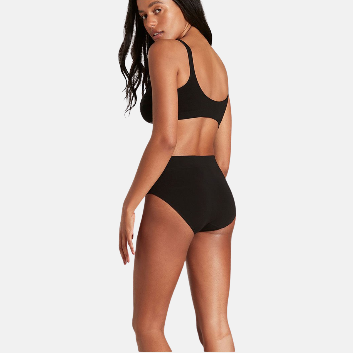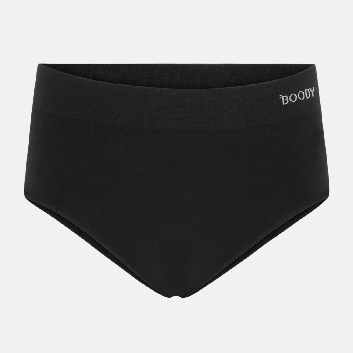 Dessa svarta bambu maxi trosor har hög midja och bra täckning av kulorna. Midjebandet är vävt som en del av trosan, det finns inga sidosömmar och sömmen i benöppningen är vikt. Trosorna är supermjuka och bambun andas vilket gör den perfekt för underkläder.